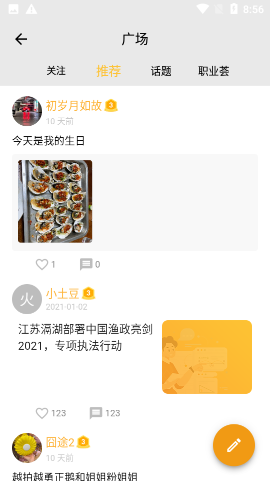 1.在广场发布动态、话题,经营自己,并以专业兴趣为社区,创建职业荟,探索更多可能。