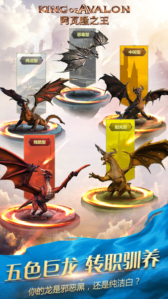 阿瓦隆之王是一款火爆的3dmmo战争策略游戏,你将继承亚瑟王的遗志,率领巨龙与各地玩家争夺精灵国度阿瓦隆的统治权。请您代表中国之队参战吧!在这里,您将养成个性化的巨龙、操控毁天灭地的魔法、重建伟大的圆桌骑士团,夺回象征王权和力量的圣剑!在全球最先进的实时翻译系统帮助下,您将成为统治全世界的传奇国王!