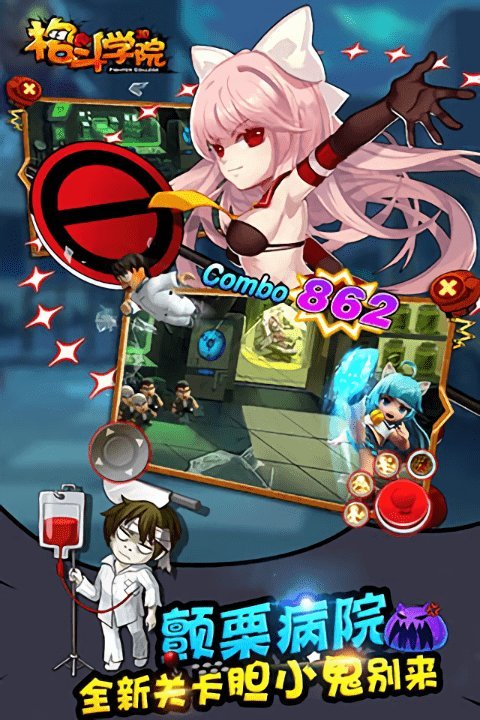 格斗学院手游是一款非常好玩的动作游戏格斗学院 炫酷而华丽的画面铿锵有力的打击感可以点燃大多数格斗游戏爱好者的游戏热情,是不是很爽,游戏中的背景采用的校园风格,在玩法模式上也提供了十分刺激的多人对抗比赛,痛快而热血的格斗等你来体验。