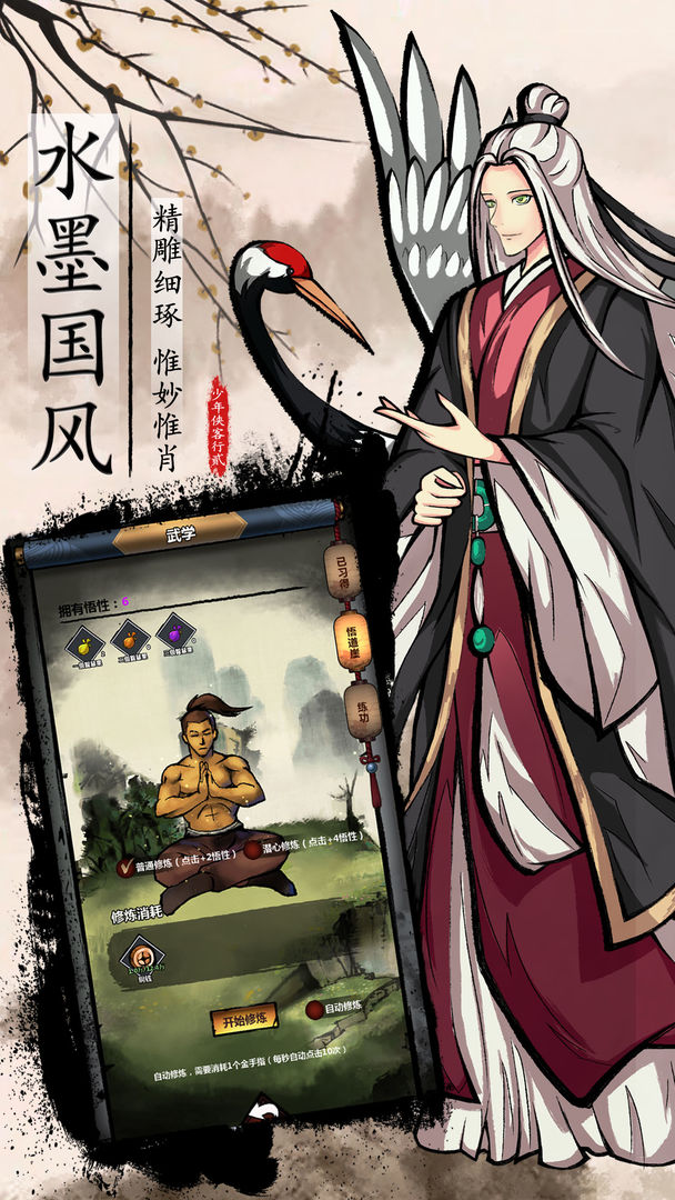 这是一款武侠题材设计的角色扮演类手机游戏,丰富多彩的角色选择,全新武侠模式挑战设计,各种各样不同副本玩法挑战,数十种不同绝世功法,打造属于你的武林传说。
