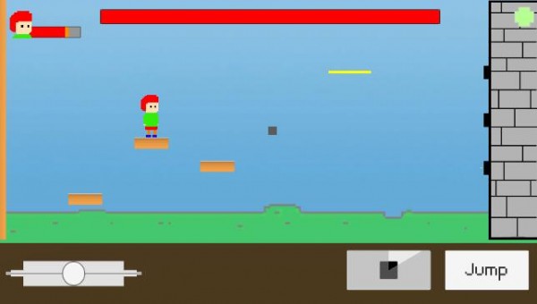4.屏幕下方的虚拟摇杆可以控制游戏角色进行移动、跳跃、减速(跑酷)、发射飞弹等动作.