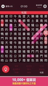 2、画面清新简洁,玩法更简单。只需使用词汇即可找到屏幕上隐藏的单词;
