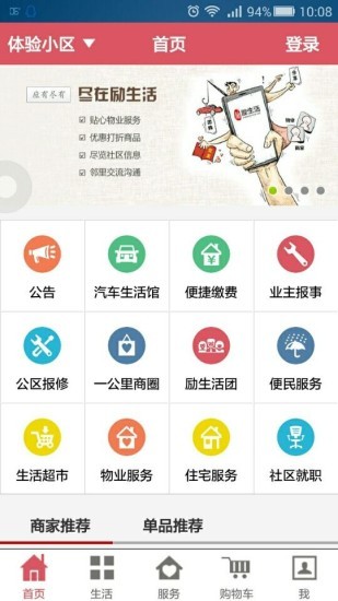 励生活app是一款掌上社区生活服务软件,励生活app的主要功能是提供在线购物,社区物业信息查询,缴纳水电费等等。励生活app旨在为更多用户创造一个便捷、全面的社区生活服务平台!励生活,是由重庆物联利浪科技有限公司联合打造的智慧生活圈。把服务、物业、商城、商家融为一体的综合生活智能服务应用,为物业与业主之间构筑畅通的交流沟通渠道,提供便利的生活服务。