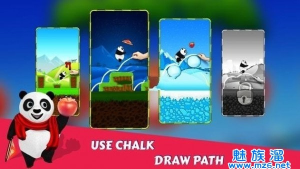 1、非常简单的游戏玩法,聪明的熊猫会根据玩家画出的线前进,一路上收集各种各样的道具。