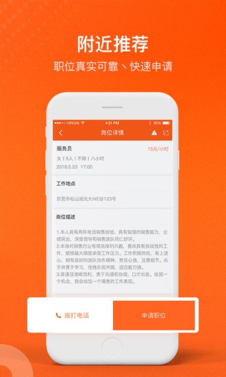 [智能推荐]手机定位,自动精准匹配附近岗位,省去海量选择麻烦;