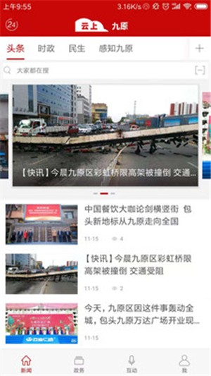 云上九原app本地资讯一手掌握,不用出门就可以完成多项政务项目,丰富的便民服务让生活更方便,是当地人的生活资讯手中宝,云上九原app集新闻、政务、文化于一体的信息互动平台。发布最新时讯,汇聚政务终端,提供便民服务。