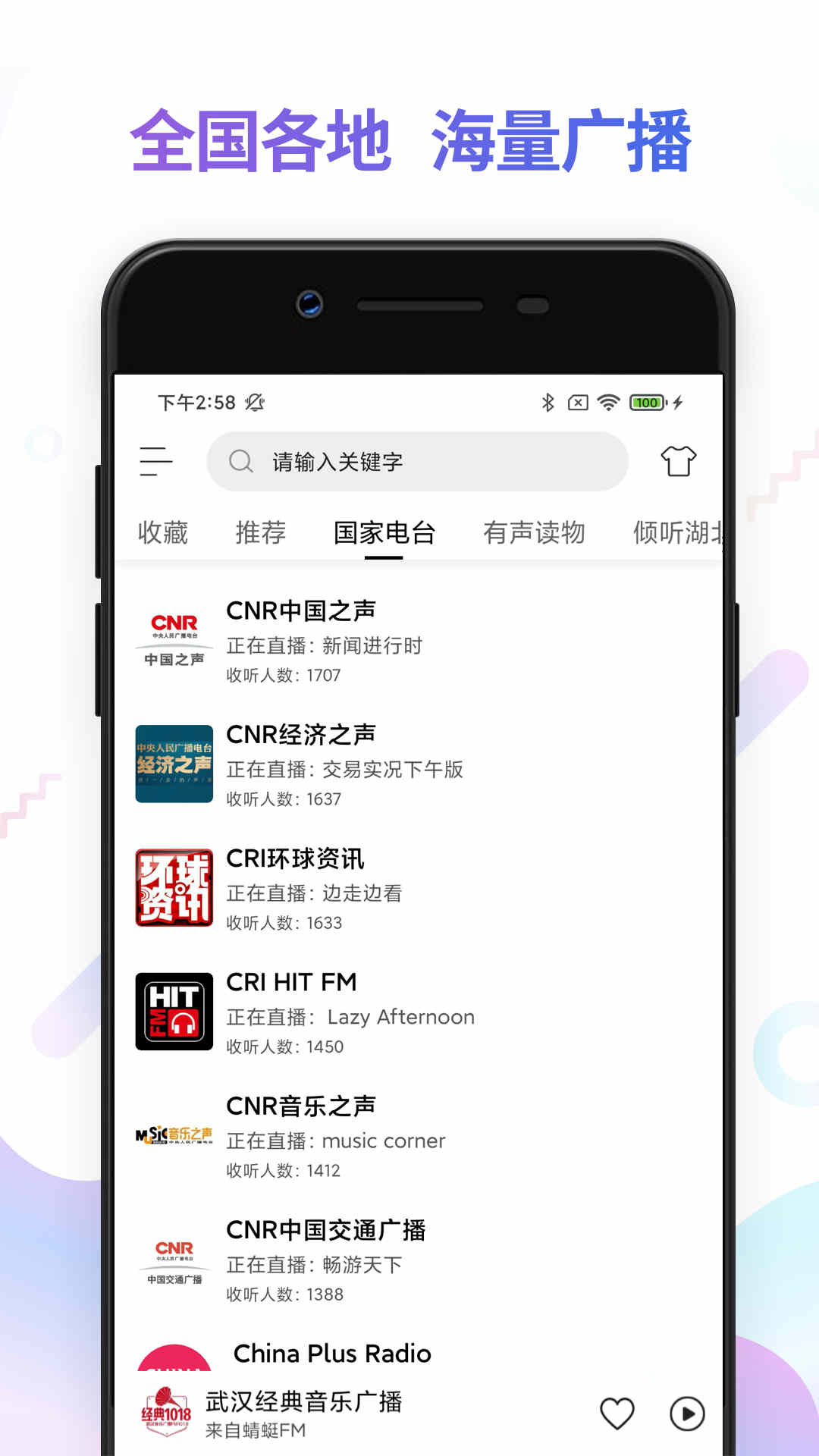 3.手机FM电台收音机拥有全球新闻资讯,都市情感,音乐,戏曲,城市,交通,经济,股市,故事,经典怀旧,养生等多类型广播电台,24小时不间断,您想什么时候听就什么时候听。