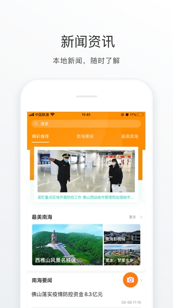 佛山南海通app是一个以南海百姓为服务基础,汇聚交通服务、生活服务、文化教育等信息为一体的综合性服务平台。帮助为用户带来全新的生活资讯以及实时信息,同时还有多种城市服务,涵盖生活、教育、娱乐、购物等多个方面,让大家感受到快速生活的魅力。