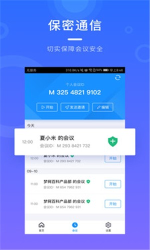 界面清爽简洁,一键预约、发起、加入会议