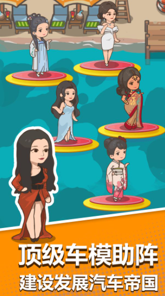 休闲汽车游戏。运营汽车梦想工厂,销售更多的输出车辆,消费金币,创造更多车型,吸引客户