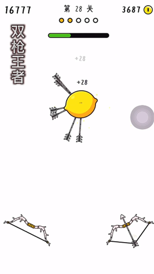 双枪王者是一款好玩的射击小游戏,结合全新玩法的射击挑战,玩家将操作两个弓箭,对游戏中的目标发起攻击,一定要命中游戏中的目标才行,获得一定的得分之后,玩家就能赢下这场游戏胜利。这个游戏中玩法很多的,结合各自有趣的挑战,玩家可以去尝试各自玩法,面对游戏挑战的目标,玩家一定要小心才行,还能使用各种道具,帮助你更快速的完成挑战。