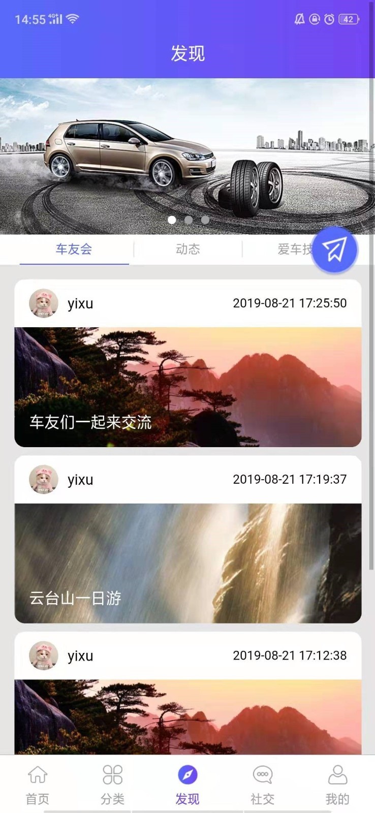中华自驾联盟app是一款为自驾游客户提供相应服务的平台。中华自驾联盟app的主要功能就是为广大自驾游车主提供自驾游有关方面的资讯技巧,还能购买相关汽车类产品。有官方组织的最新的相关的资讯活动,还有自发成立的车友会等的众多的活动组织,方便广大的车友们一块组团出去玩。各种活动都是会不定期的去进行开展的,在这里的自驾相关的服务都是非常的多的。