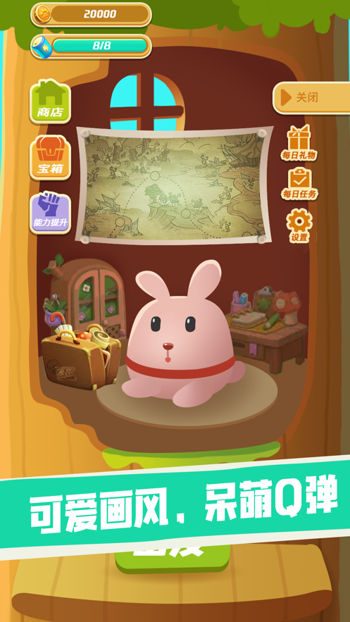 1000关精心设计的游戏关卡,超可爱的画风,呆萌Q弹的兔兔。