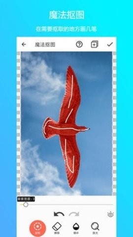 --魔法抠图实现一键抠图,只需在要抠取的2265地方画一笔即可自动识别;