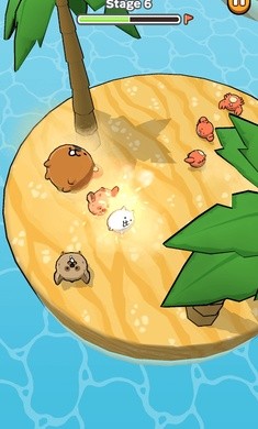 有各种猫咪进行比赛对战,玩法和碰碰车一样,和其他的玩家对撞,将其玩家撞到海里面去。