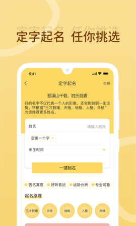 1.【起名取名】:提供新生儿起名、婴幼儿起名、宝宝起名取名、起名字、改名服务,且名字结合诗词、诗经楚辞、论语、唐诗、宋词等等国学文化,帮助各位爸爸妈妈为宝宝起名字,取名字,改名字,姓名分析,让宝宝的名字响亮大气,字音、字形、字义、时令、生肖、五格等,让起名不再是一件麻烦事。