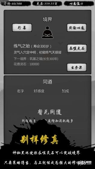 2、别样修真,简单的境界突破方式,神秘黑珠使你吞噬灵石,就能突破境界,只要策略得当,马上就能成为强大的修仙者!