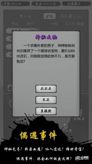 3、丰富的偶遇事件,一夜暴富?神秘乞丐?斩杀凶魔?修真天才?仙人遗迹?稀世奇宝?当你遇到这些事件,你能否审时度势,做出对的选择?