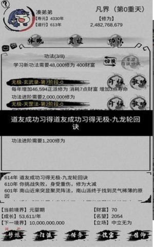 1、修仙模拟器我定成仙游戏利用纯文字的介绍将一个内容非常丰富的仙侠江湖展现的非常的到位。