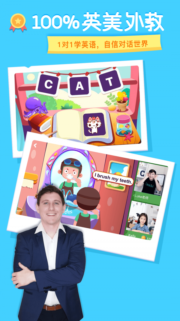 1、趣味教学:创新儿童英语,少儿英语早教启蒙平台,英美外教在线趣味教学,让孩子爱上英语。