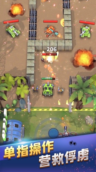 在游戏中,驾驶战车不断击退敌人,用炮弹炸开小房子,营救房子里面的俘虏,登
