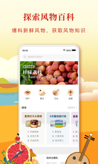 * 风物百科:这里汇集了各地特产美食、热门景点、非物质文化遗产,你可以看到专业、具体的知识解读,了解风物的真实面貌。