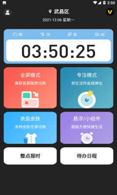 3、模式丰富,全屏模式,专注模式,报时模式不同效果的功能都有。