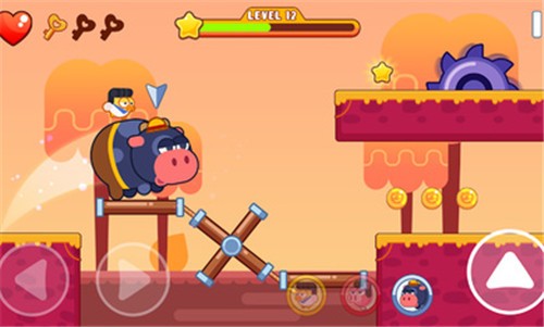 1、2D横版卷轴画面,玩家需要在游戏中控制一只非常可爱的小猪去冒险;