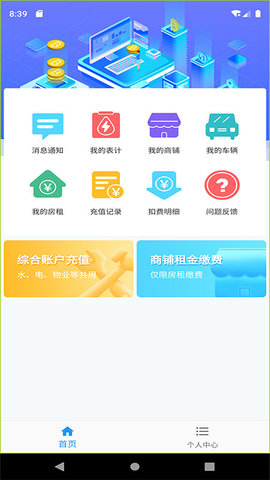 1、支持多种业务缴费,可以快速在平台中缴纳房租,水电费用,查看当前店铺消息,了解房租情况,为自身做好财务规划。