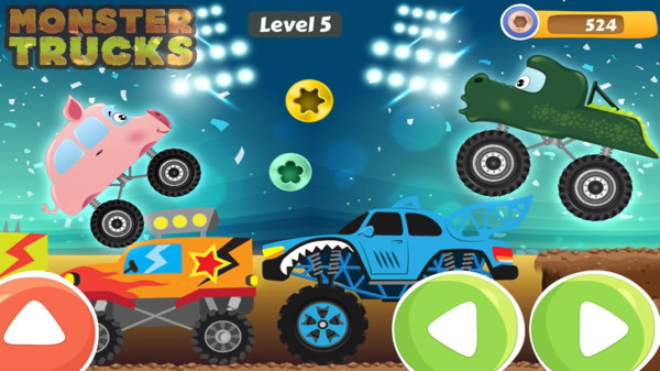 7卡通怪物车可供选择,全新的车辆具有可变发动机功率,悬架,轮胎和加速度。