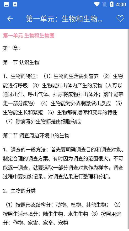 4、涵盖了初中生物各章节内容的知识点总结。