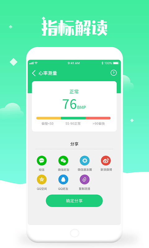 有手机测量功能,也有手机输入,更有心率标准可供参考。