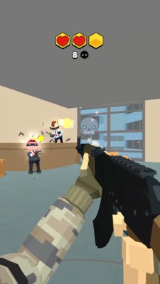 1、3D射击对战手游,有着简单和困难两种难度可以挑战,玩家可以使用手枪、步枪、狙击等武器战斗,