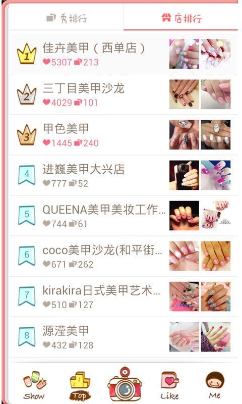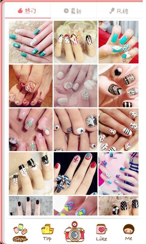 美甲店陈列自己店内的优秀作品,美甲师展示自己的创意作品,美甲爱好者秀出自己的DIY杰作,每个人都可以创造美甲作品,也可以收藏喜欢美甲作品。这里有大量的指甲美图秀[3] ,用户总能找到中意的那一款。