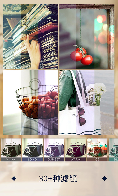 为你的图片添加漂亮的文字。结合精心设计的滤镜、图形相框和艺术字贴纸,帮你做出漂亮极富创意的图片,一键分享到社交网络,让你的设计得到更多的赞叹!