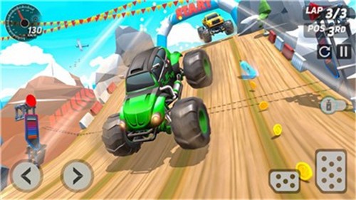 进入游戏玩家选择不同的山地场景和大脚车,每一个场景都会有不同的任务等你来完成,你需要更好的操作技巧来完成更多的挑战,随着等级的提升会有更难的场景等你解锁选择,每一个不同的任务都能让你获得超多奖励,丰富的玩法自由选择体验,让自己不断完成更多驾驶任务体验更多不同驾驶挑战乐趣。