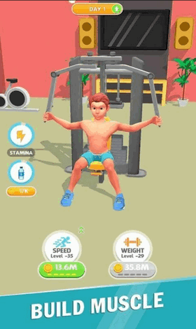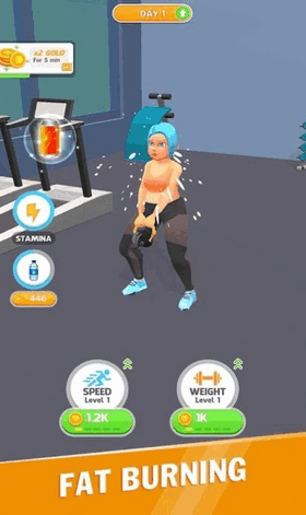 3,放置的玩法让玩家更好的健身,帮助一个肥胖的角色不断健身瘦身,成为一个健康,阳光的男神或女神。