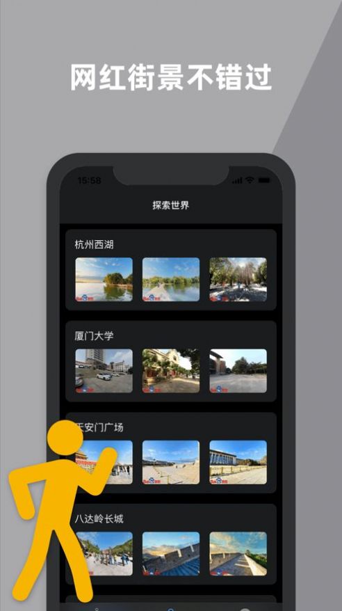 在这里可以看到不同城市的街景,可以自由切换,也可以自己进入相关定位。