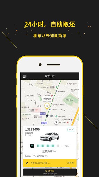 手机APP搞定租车所有流程,所有的租车过程都是用户自己操作;