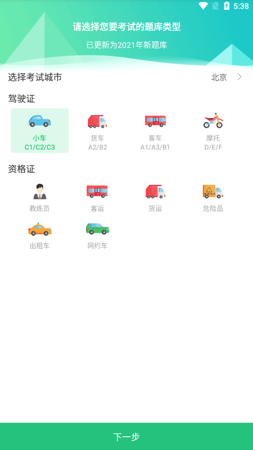 1、理论考试:提供小车、货车、客车、摩托车和资格证题库!