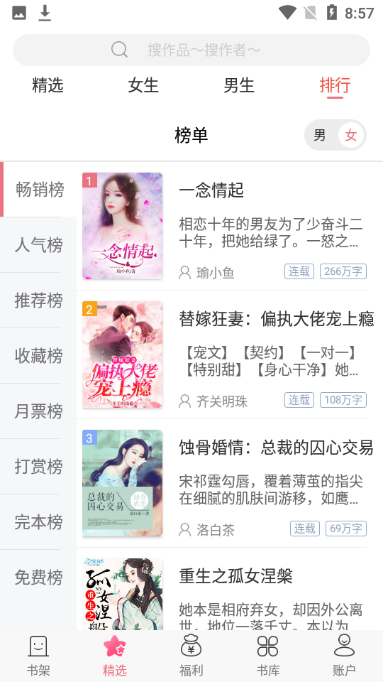 找不到书刊的时候也可以直接查看排行榜,有周榜、月榜和总榜,当然也可以根据不同的属性来找书;