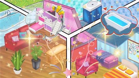 玩家可以使用各种家具和装饰装点自己的房间,你可以在这里学到更多关于如何装饰你的家的技巧和经验,展示最漂亮的家,你可以保存你装扮的房子,与你的好朋友分享,展示你的创作。