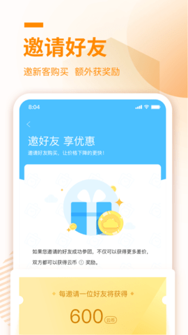 4.如果您想让价格下降的快,返还的差价多,就邀请好友一起来买吧~双方都可以获得抵扣现金的云币哦