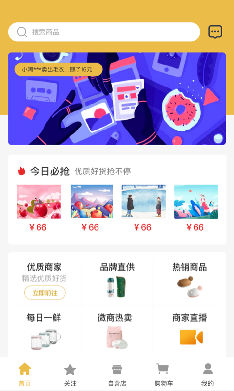 自营店:招商加盟,进货区、积分区、特惠区,积分可兑换众多好礼。