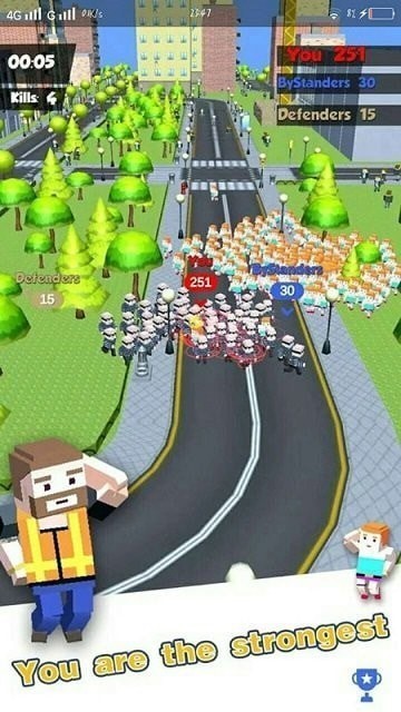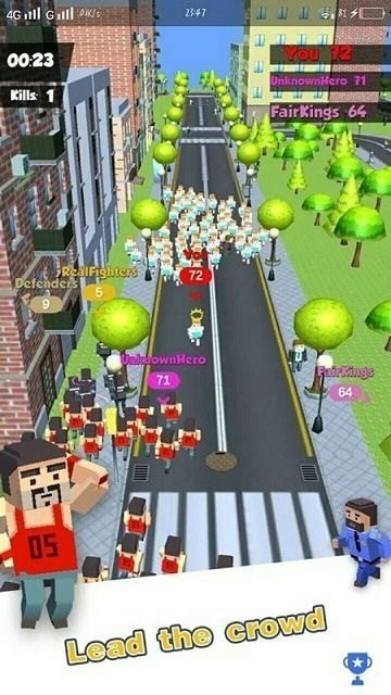 在城市里召集更多的小弟加入自己,让你可以成功的吞噬掉其他的队伍,游戏整个玩法非常简单上手,以及超大的地图可以去探索,小心周围的人群,灵活躲避各种不同的障碍物。