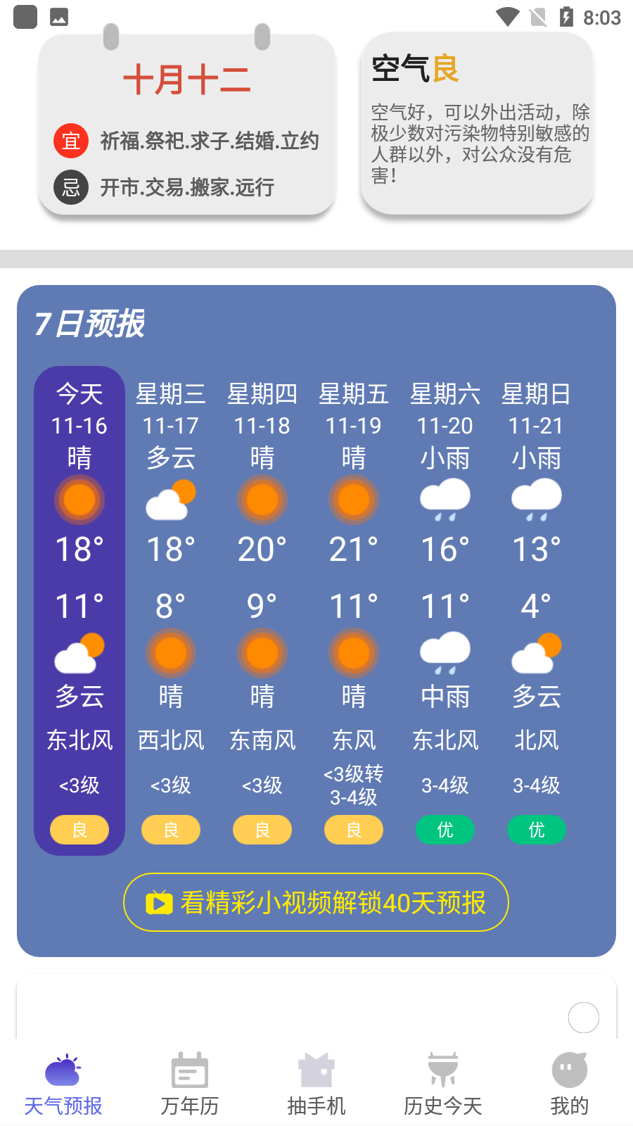 4、【7天天气预测】掌握未来7天天气状况,预知晴雨冷暖为生活早做打算;