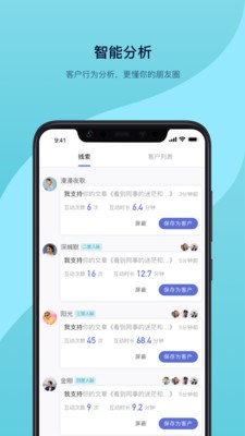 3.电子名片,数据分析,商业获客等等,可以让用户通过查看来快速的提升自己的业绩,通过了解更多的潜在客户,对那些有意向的客户及时进行跟进沟通,大大的提升的成交率每日三单软件亮点