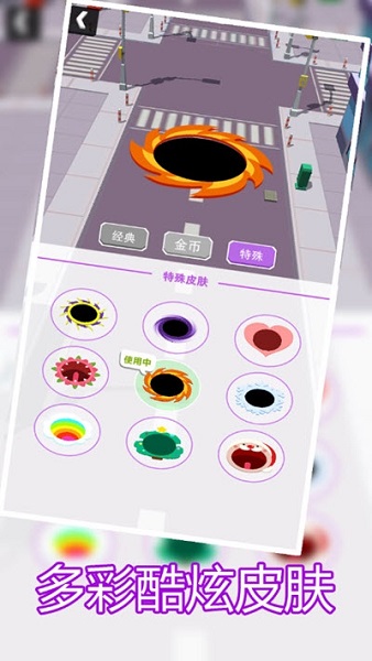 2、自由的控制黑洞进行探索,吃掉所有出现过的物品道具;