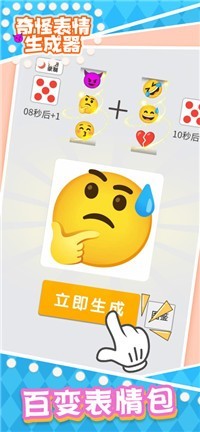 奇怪的表情生成器是一款魔性搞笑的表情包制作游戏,各种奇葩表情包可以在这合成,很轻松的玩法,有着上百个图案,去合成更多的魔性表情包吧,这份体验也是很有趣的,会合成各种令你意想不到的表情包,游戏体验也是非常搞笑的。将两个不同的表情包合成在一起,手指滑动拖动在一起,各种你意想不到的表情包可以合成在一起,这个体验也非常搞笑。