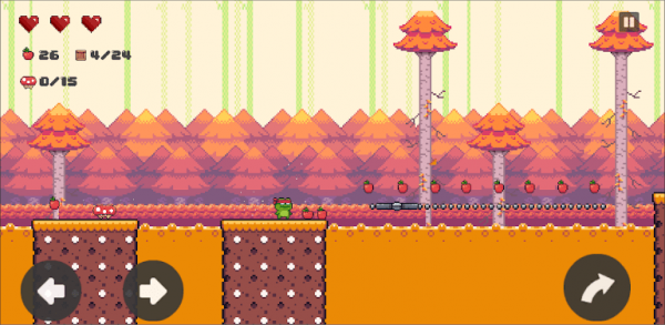 在游戏中玩家需要操控小青蛙不断突破障碍物,收集路上的食物,带领小青蛙一路上勇往直前。